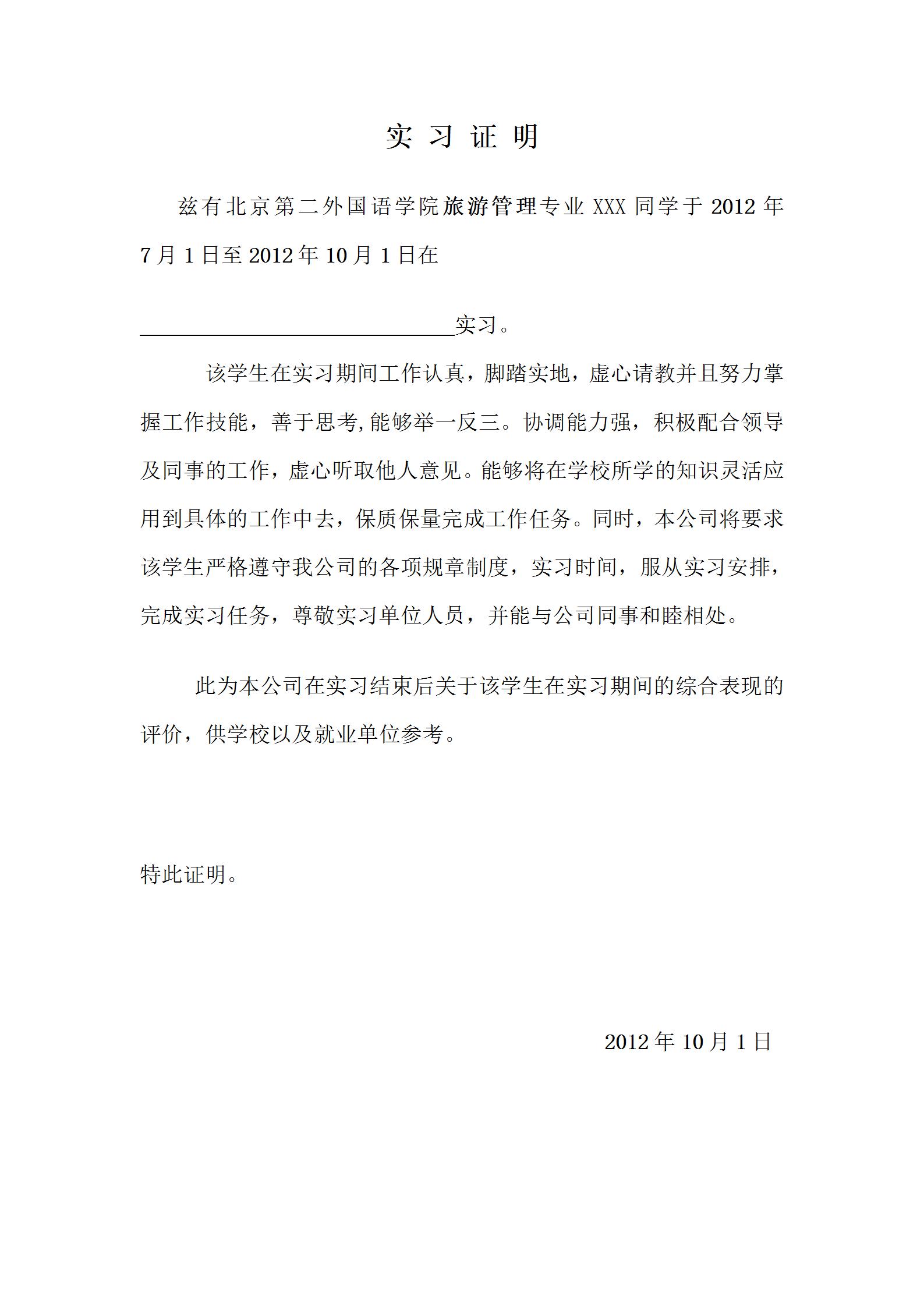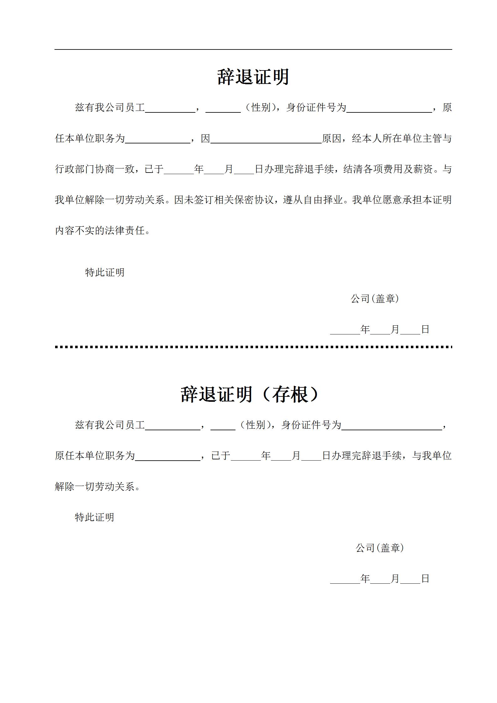 身份证号码: ___________________姓名: _________ 任职我公司______部______岗位,至_____年____月____日,因个人原因离职,经公司慎重考虑准予离职,已办理完毕离职手续。